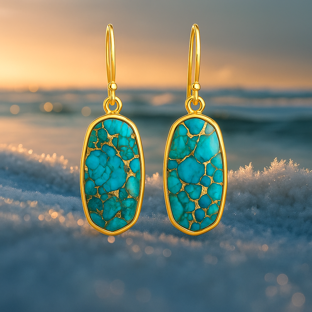 Questi orecchini racchiudono la bellezza autentica delle pietre naturali, con sfumature azzurre e venature irregolari che ricordano i riflessi del mare in inverno.